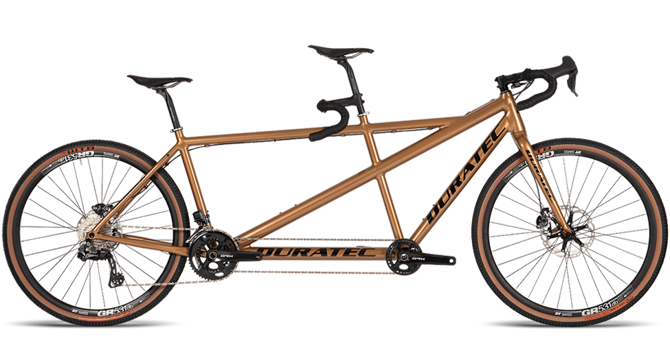 The Duratec Big Bang Gravel tandem is a fabulous bike.It is available in a variety of configurations, and they do 9 standard sizes as well as custom sizes. Duratec also offer a large range of colours and paint designs.